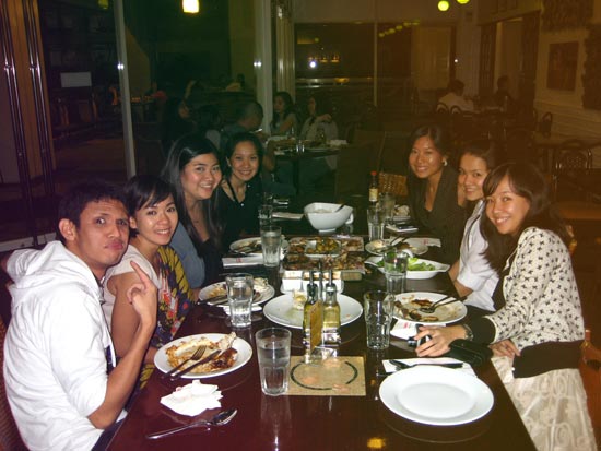 After a fifteen-minute discussion on why we were P200 short (hahaha), we headed home. The food was yummy (We ordered the Surf and Turf platter, that comes with an assortment of barbecued chicken, lamb, beef & pork ribs, cream dory, salmon, tuna, rice, and a house salad. I loved the garlic sauce with the fish) and the company was great. I love Friday nights with friends!