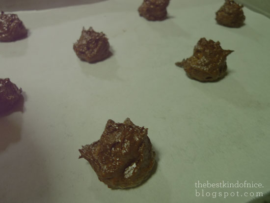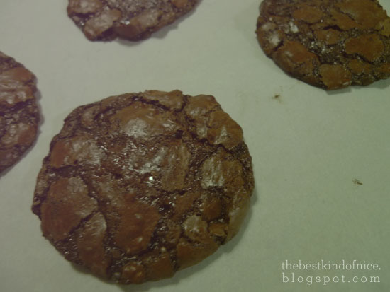 I’ve been obsessing about these melt-in-your-mouth brownie cookies for a while. I had some egg whites left over from making the Chocolate Turtle Pie for New Year’s so I tried the recipe over the weekend. They came out chewy and too sweet (I didn’t have any dark chocolate around so I used semisweet). Next time, I think I will use more egg whites and lessen the chocolate (maybe just 1 cup).