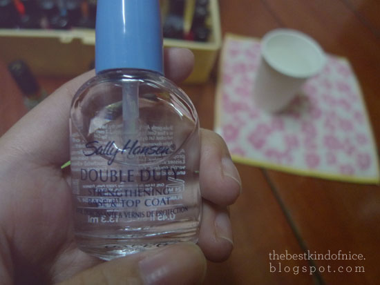 Both require the same first step, apply one coat of base coat. I use Sally Hansen’s Double Duty Strengthening base & top coat. Doesn’t make my nails yellow and it’s value for money since you only need one bottle for your base and top coats!