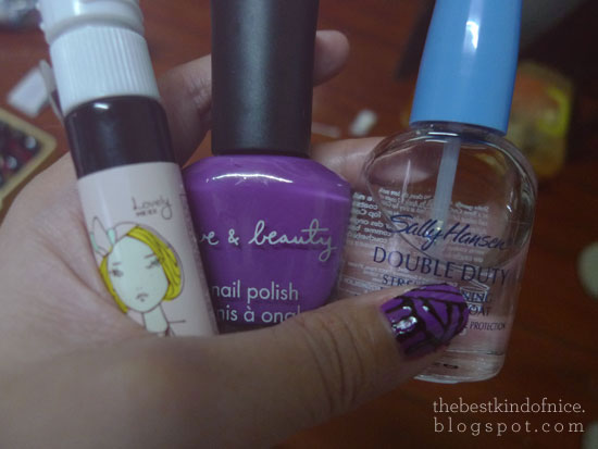 I also tried a red, blue, and purple combination but the polish would dry up too quickly and end up clumpy on my nails. So out came the polish remover.
