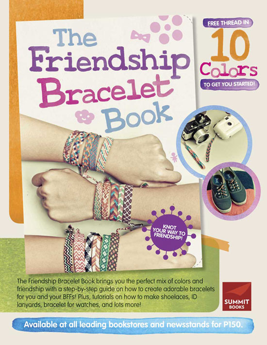 Don’t forget to grab a copy at all leading bookstores and newsstands nationwide. It’s only P150 and you get 30 patterns, tons of fun projects, and free thread in TEN colors. If that isn’t a good deal, I don’t know what is. Let me know if you already have your copy and what your favorite bracelet pattern is. (: