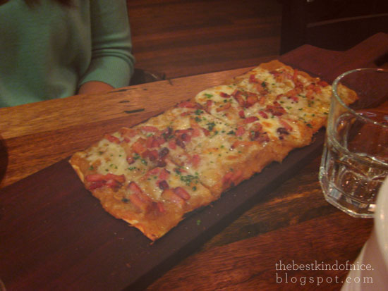 { Banh Mi Sliders and Tarte Flambée with Bacon, Gruyere, and Caramelized Onions at Wild Flour }